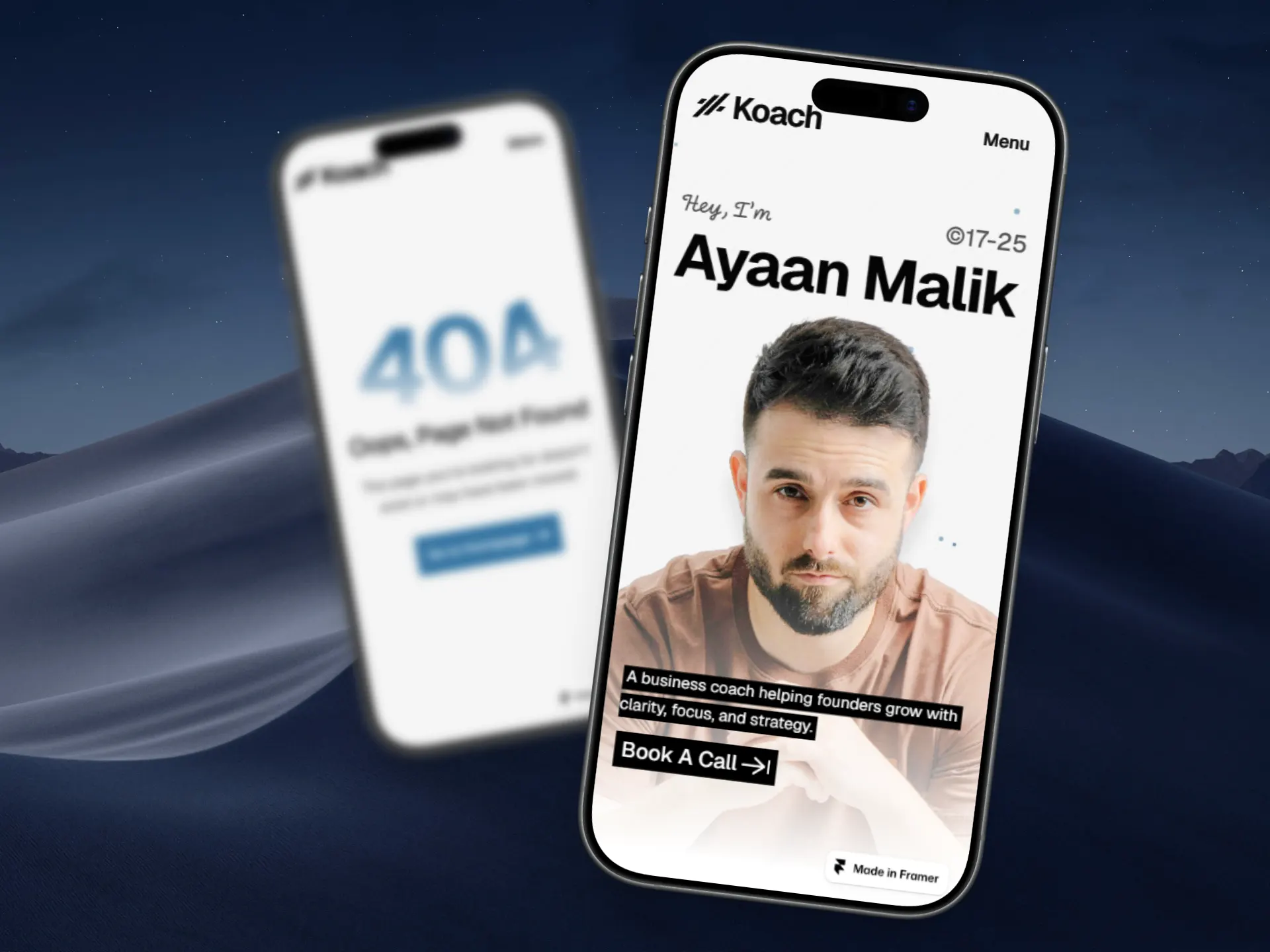 Koach is a Framer template built for business coaches and consultants. It uses bold typography and spacious layouts to highlight your expertise, explain your process, and present your programs and case studies clearly. Everything is organized for quick, no-code customization, even for beginners.