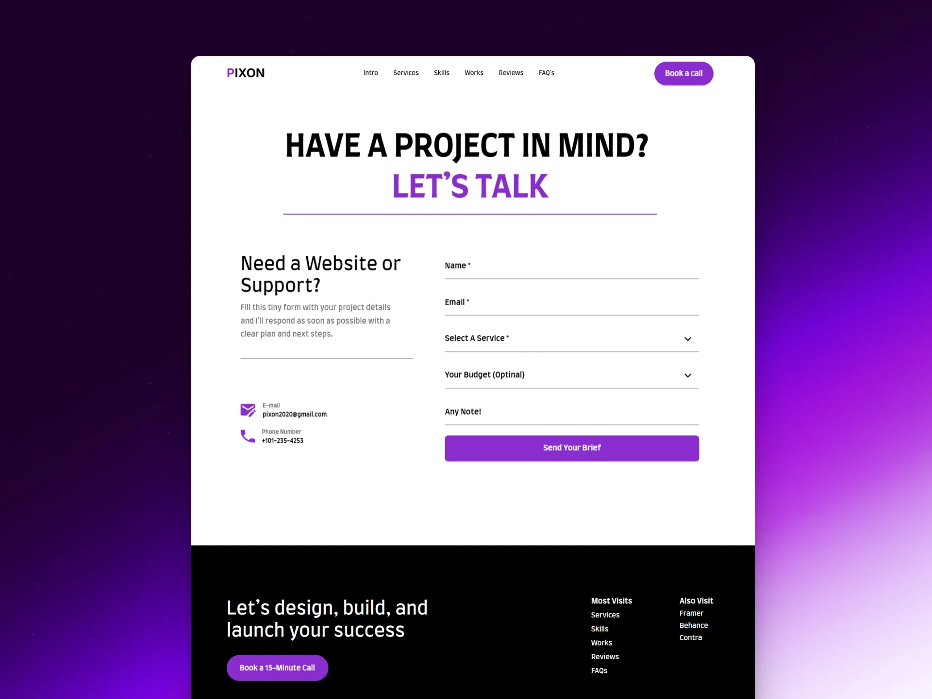 PIXON is a clean and modern Framer portfolio template designed for developers & designers who want to present their skills and work with confidence. It combines minimal design, smooth interactions, and flexible components to help you build a professional online site in minutes.
