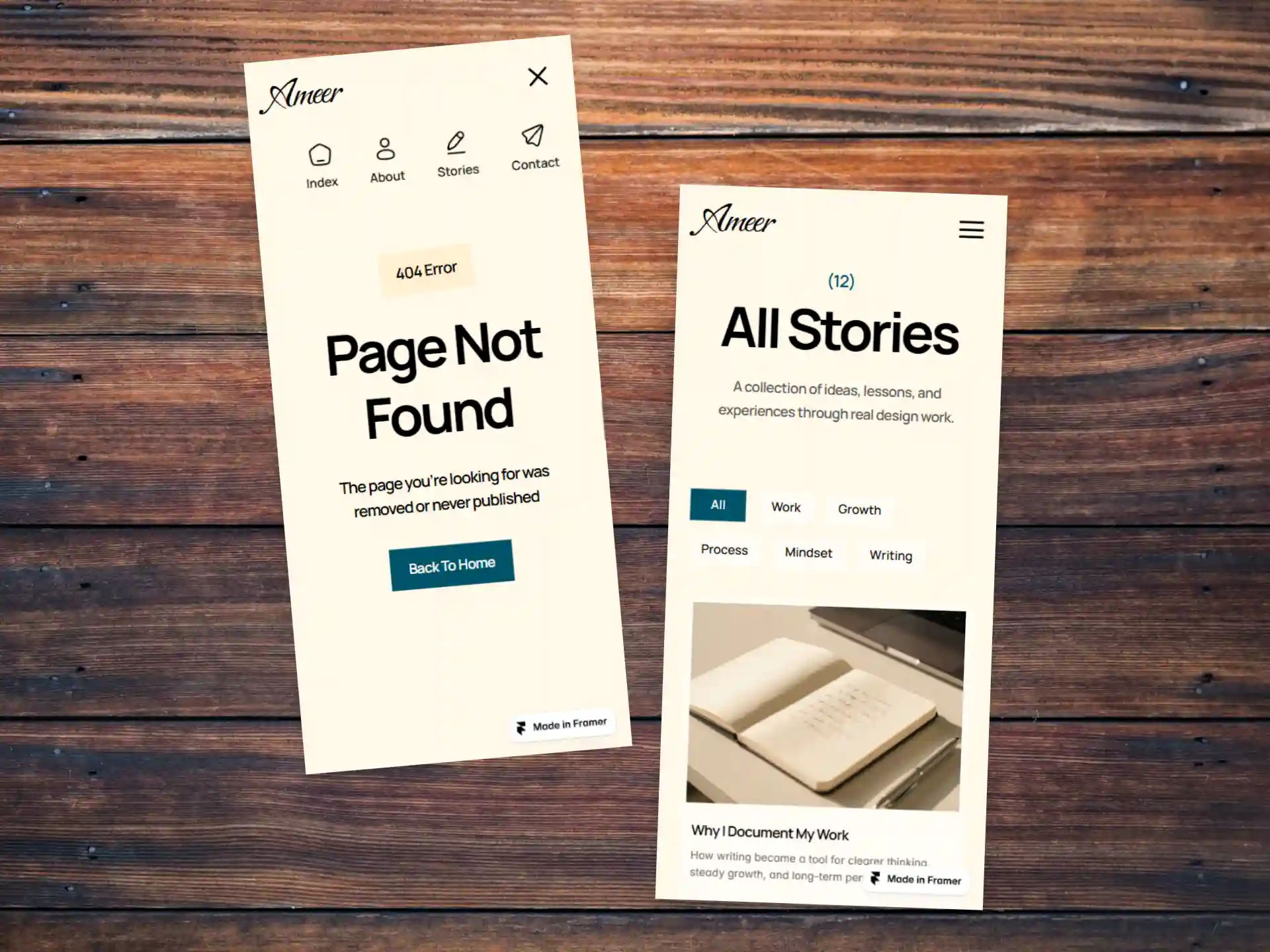 Stories is a Framer template built for personal blogs, writers, and creators who want to share ideas through a clean, reader-friendly design. It uses soft tones, balanced spacing, and calm layouts to create a comfortable reading experience while keeping the site modern and structured.